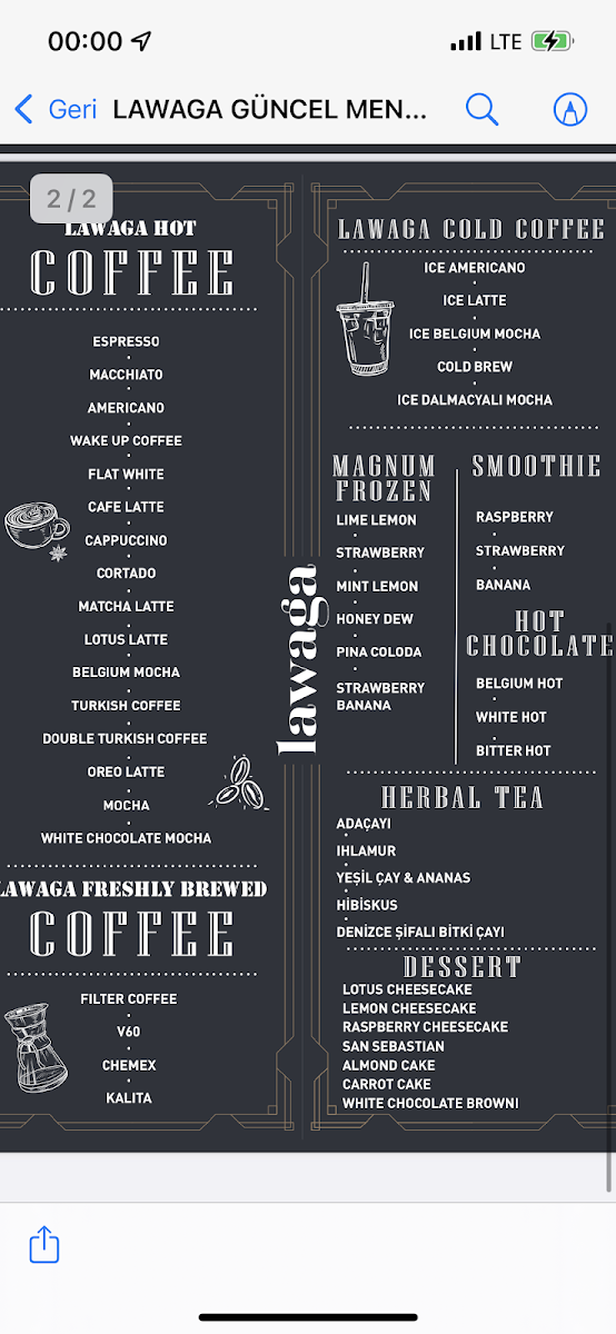 Lawaga Alaçatı Coffee & Cocktail Bar Menu